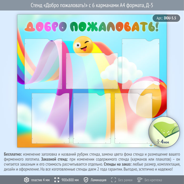 Стенд «Добро пожаловать!» с 6 карманами А4 формата (DOU-5.5) в Ачинске купить