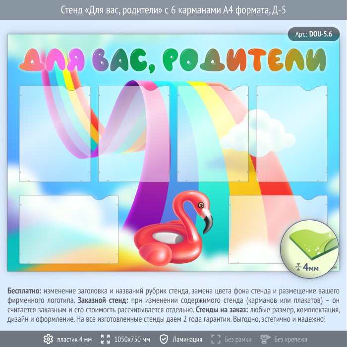 Стенд «Для вас, родители» с 6 карманами А4 формата (DOU-5.6) в Ачинске купить