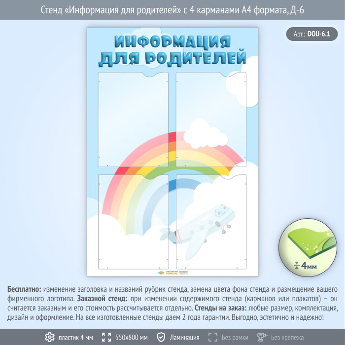 Стенд «Информация для родителей» с 4 карманами А4 формата (DOU-6.1) в Ачинске купить