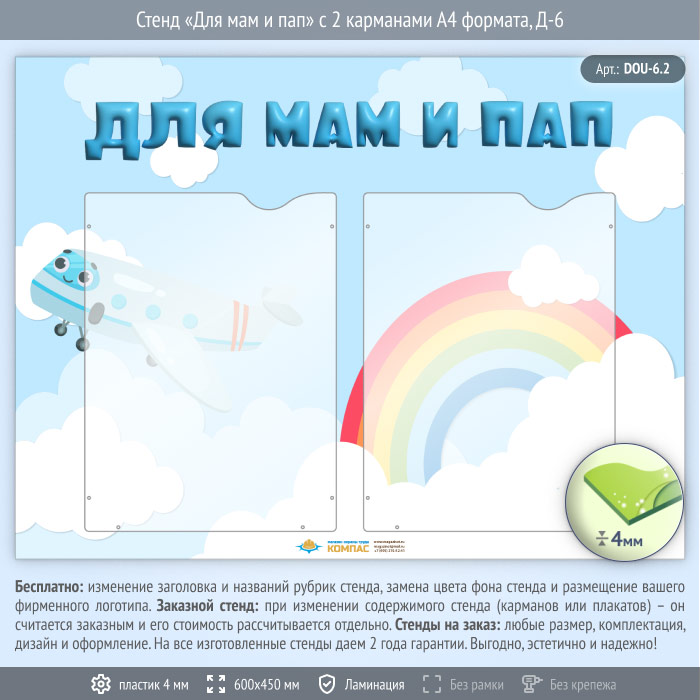 Стенд «Для мам и пап» с 2 карманами А4 формата (DOU-6.2) в Ачинске купить