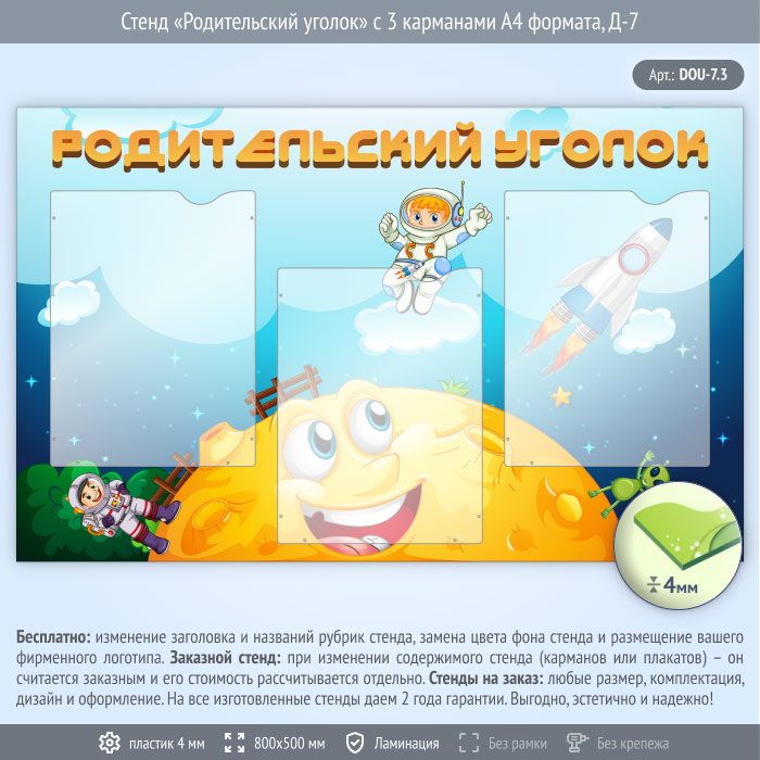 Стенд «Родительский уголок» с 3 карманами А4 формата (DOU-7.3) в Ачинске купить