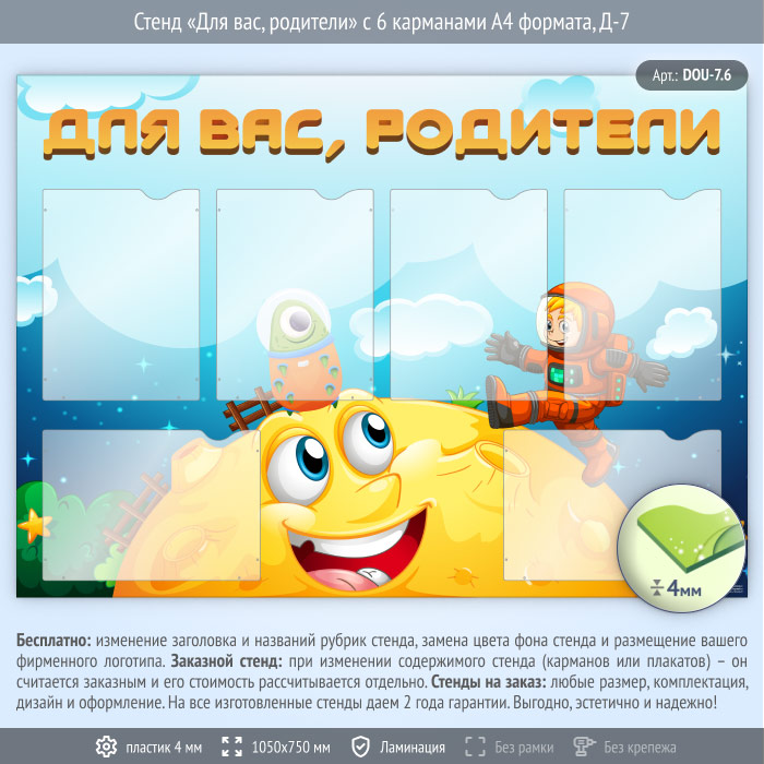 Стенд «Для вас, родители» с 6 карманами А4 формата (DOU-7.6) в Ачинске купить