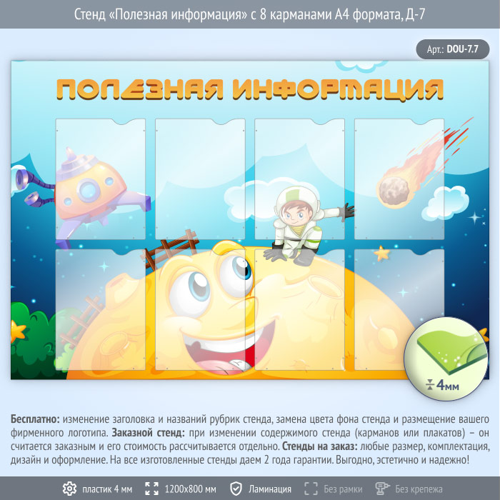 Стенд «Полезная информация» с 8 карманами А4 формата (DOU-7.7) в Ачинске купить