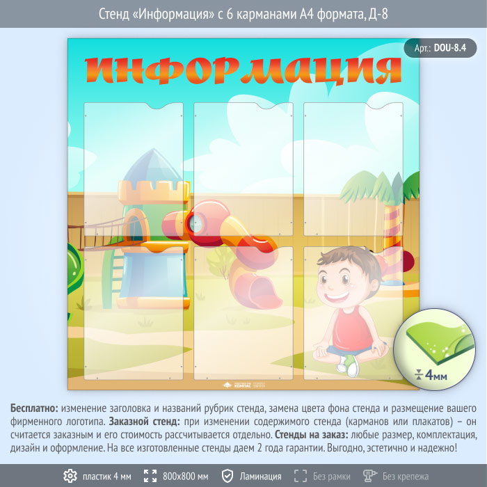Стенд «Информация» с 6 карманами А4 формата (DOU-8.4) в Ачинске купить