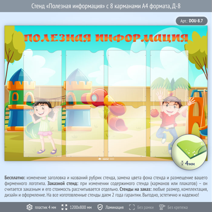Стенд «Полезная информация» с 8 карманами А4 формата (DOU-8.7) в Ачинске купить