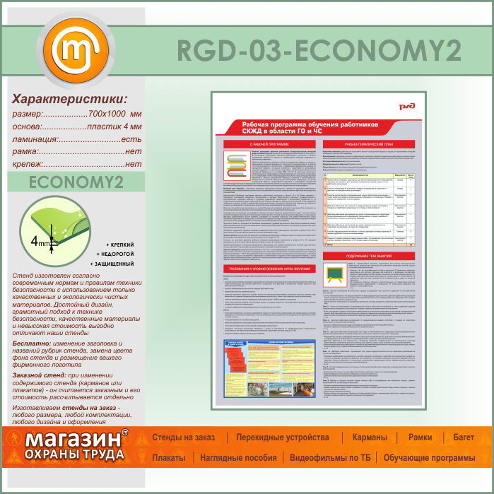 Стенд «Рабочая программа обучения работников СКЖД в области ГО и ЧС» (RGD-03-ECONOMY2) в Ачинске купить