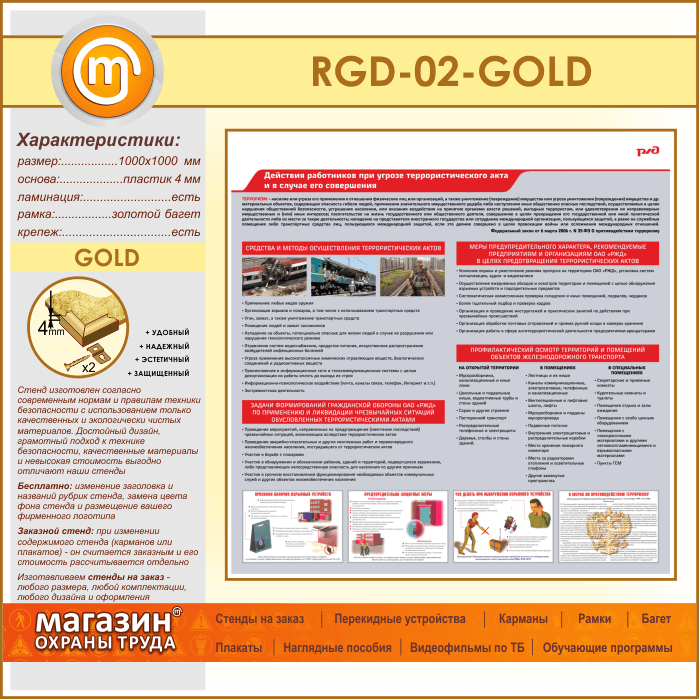 Стенд «Действия работников при угрозе совершения террористического акта и в случае его совершения» (RGD-02-GOLD) в Ачинске купить