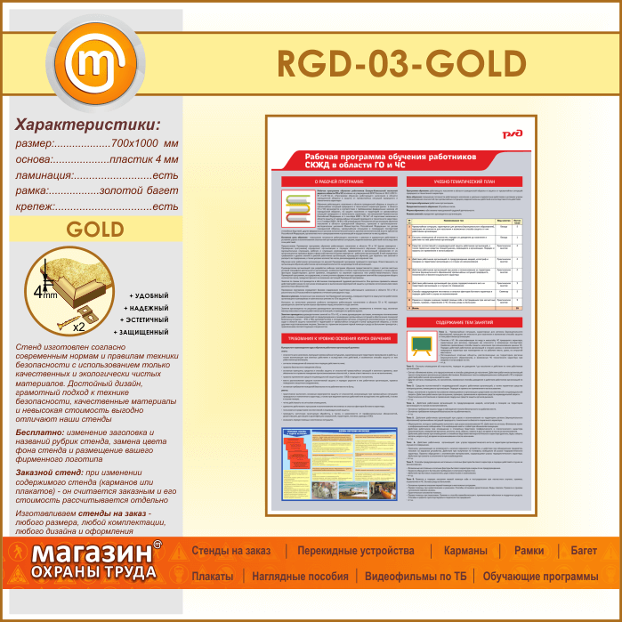 Стенд «Рабочая программа обучения работников СКЖД в области ГО и ЧС» (RGD-03-GOLD) в Ачинске купить