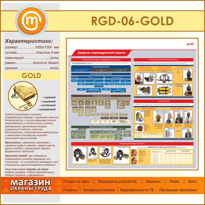 Стенд «Средства индивидуальной защиты» (RGD-06-GOLD) в Ачинске купить