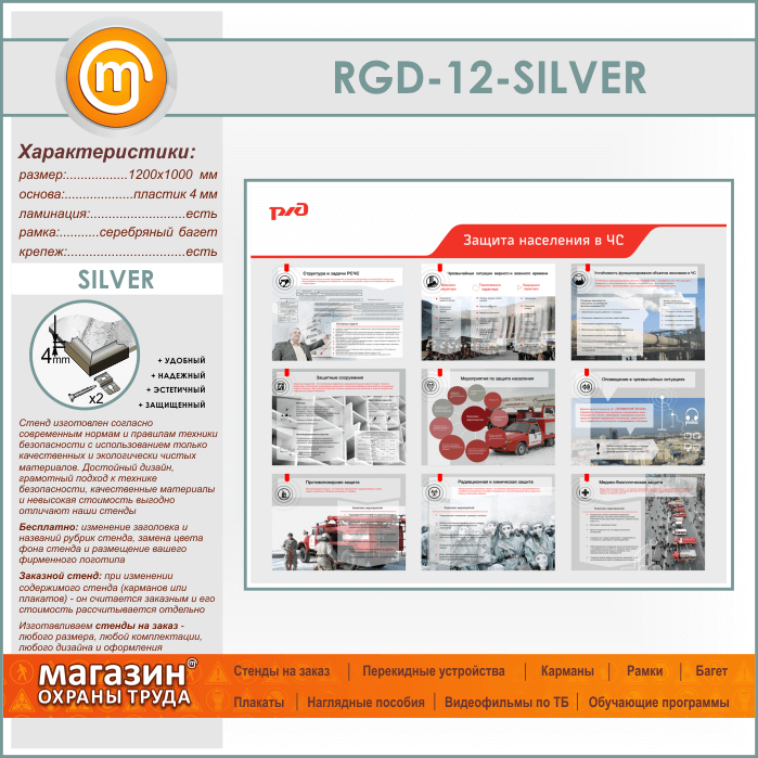 Стенд «Защита населения в ЧС» (RGD-12-SILVER) в Ачинске купить