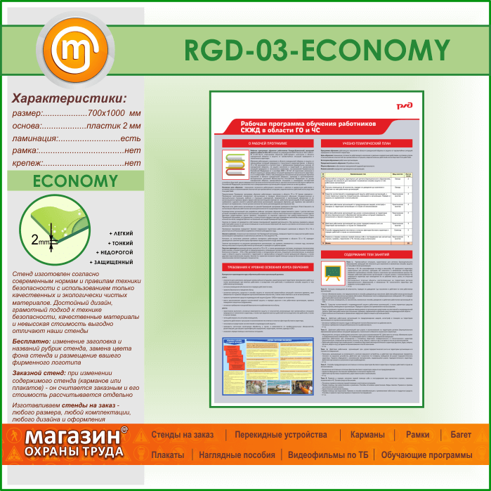 Стенд «Рабочая программа обучения работников СКЖД в области ГО и ЧС» (RGD-03-ECONOMY) в Ачинске купить
