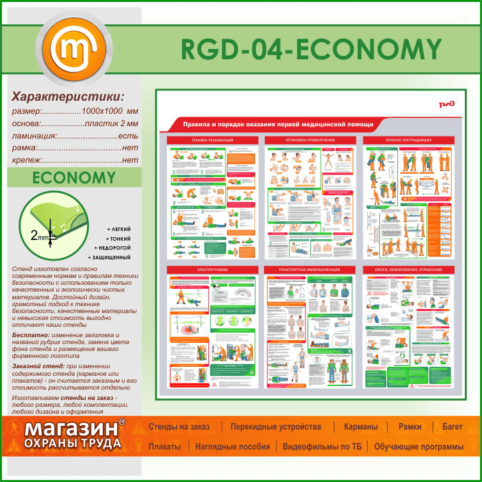 Стенд «Правила и порядок оказания первой медицинской помощи» (RGD-04-ECONOMY) в Ачинске купить