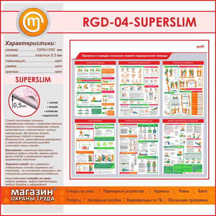 Стенд «Правила и порядок оказания первой медицинской помощи» (RGD-04-SUPERSLIM) в Ачинске купить