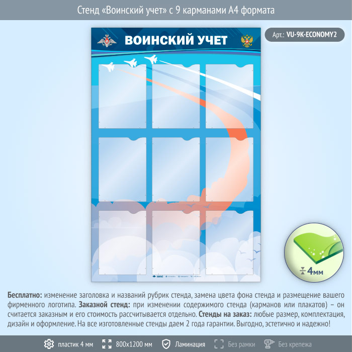 Стенд «Воинский учет» с 9 карманами А4 формата (VU-9K-ECONOMY2) в Ачинске купить