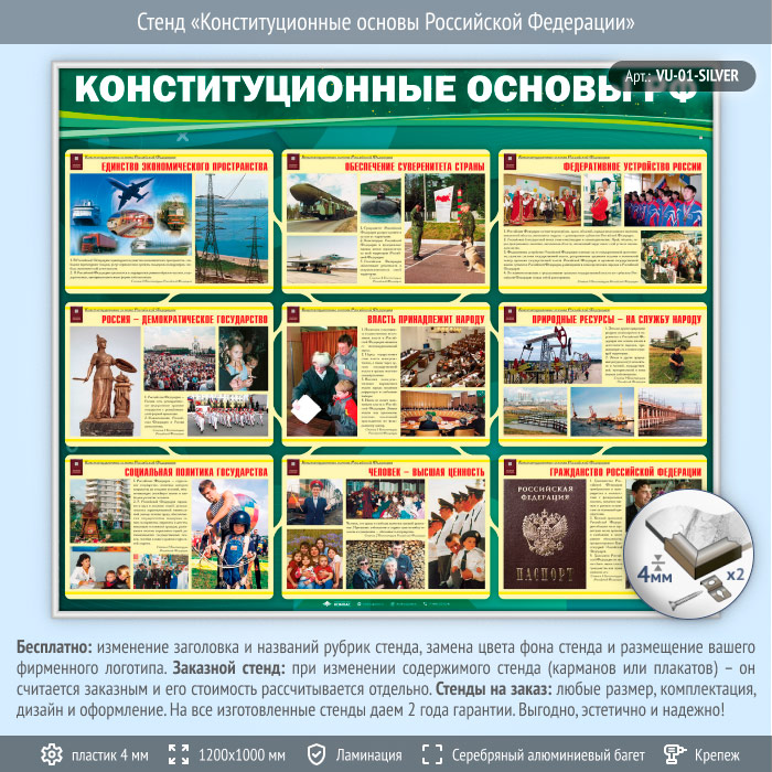 Стенд «Конституционные основы Российской Федерации» (VU-01-SILVER) в Ачинске купить