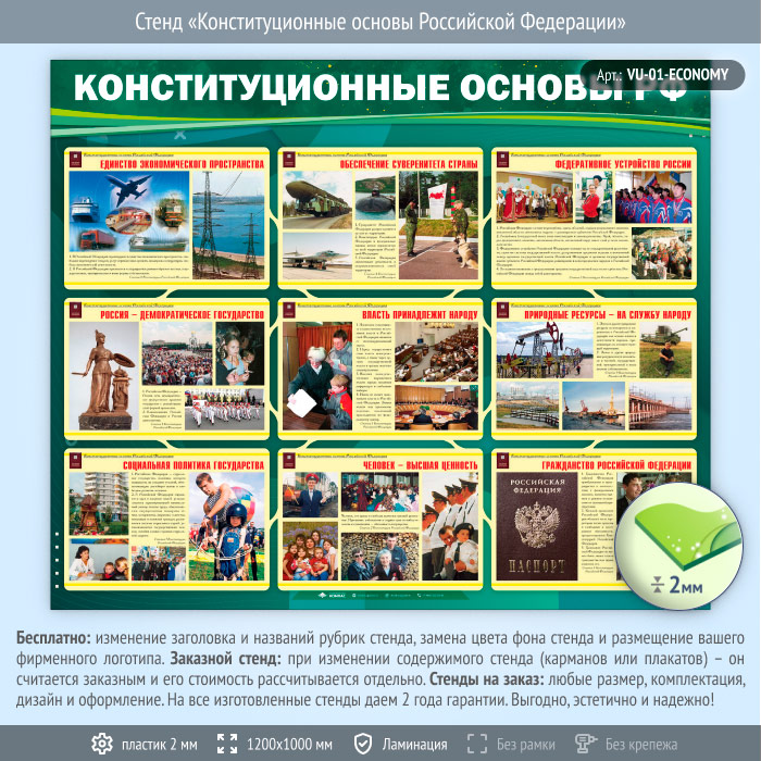 Стенд «Конституционные основы Российской Федерации» (VU-01-ECONOMY) в Ачинске купить