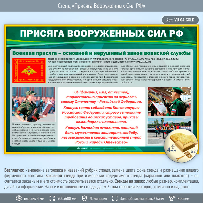 Стенд «Присяга Вооруженных Сил РФ» (VU-04-GOLD) в Ачинске купить
