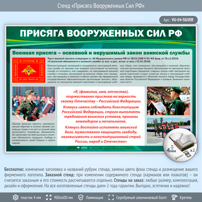 Стенд «Присяга Вооруженных Сил РФ» (VU-04-SILVER) в Ачинске купить