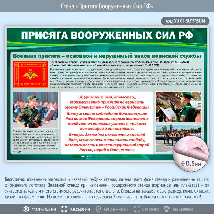 Стенд «Присяга Вооруженных Сил РФ» (VU-04-SUPERSLIM) в Ачинске купить