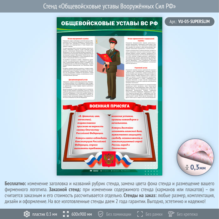 Стенд «Общевойсковые уставы Вооружённых Сил РФ» (VU-05-SUPERSLIM) в Ачинске купить