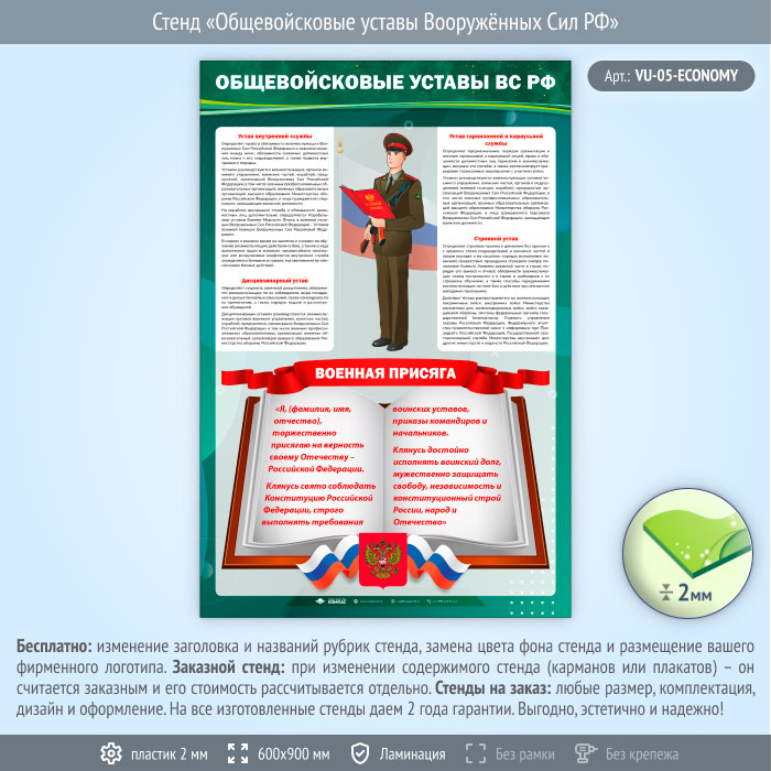 Стенд «Общевойсковые уставы Вооружённых Сил РФ» (VU-05-ECONOMY) в Ачинске купить