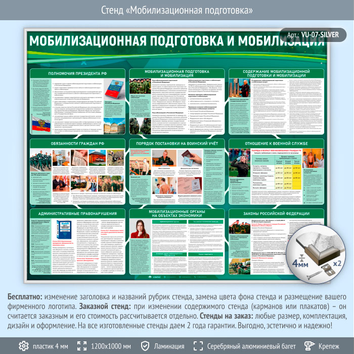 Стенд «Мобилизационная подготовка» (VU-07-SILVER) в Ачинске купить