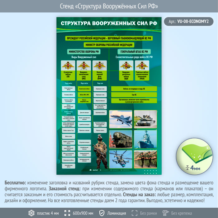 Стенд «Структура Вооружённых Сил РФ» (VU-08-ECONOMY2) в Ачинске купить