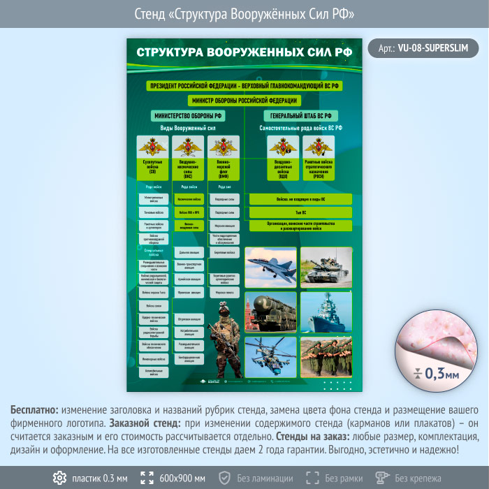Стенд «Структура Вооружённых Сил РФ» (VU-08-SUPERSLIM) в Ачинске купить