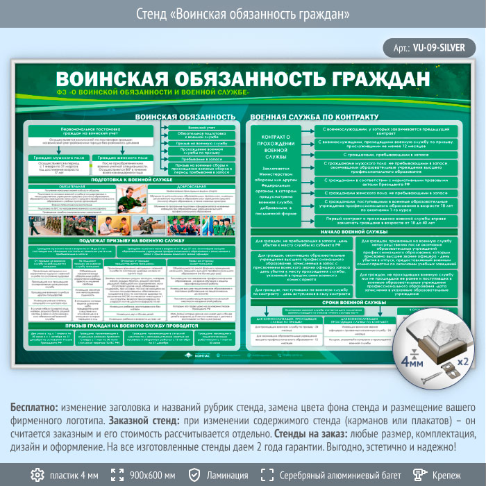 Стенд «Воинская обязанность граждан» (VU-09-SILVER) в Ачинске купить