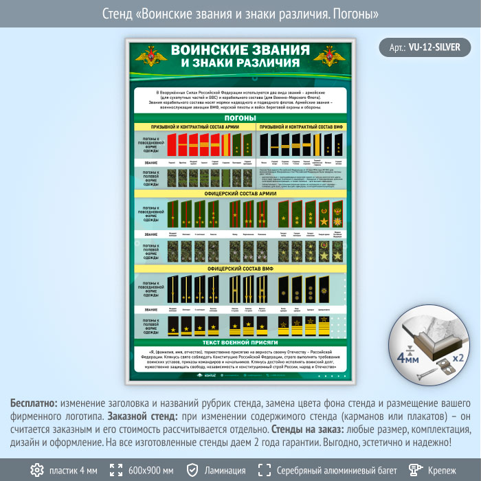Стенд «Воинские звания и знаки различия. Погоны» (VU-12-SILVER) в Ачинске купить