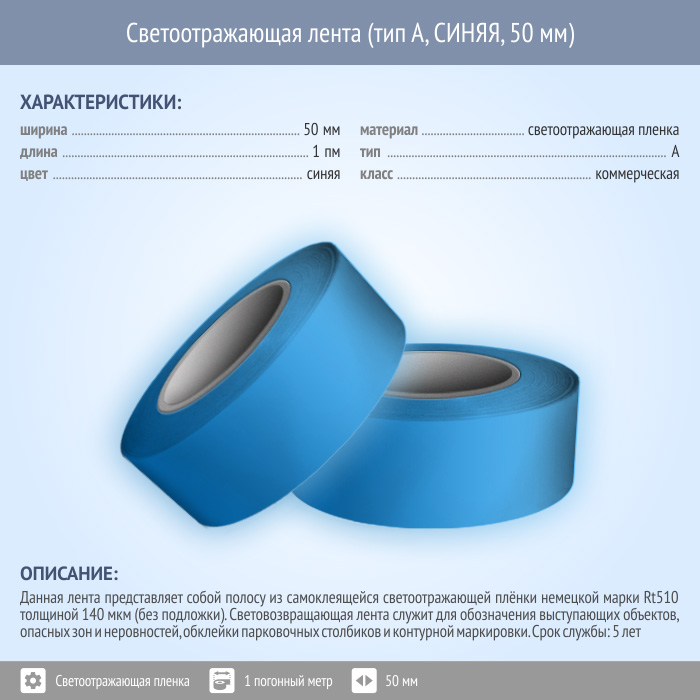 Светоотражающая однородная лента (тип А, СИНЯЯ, 50 мм х 1 п.м.) в Ачинске купить