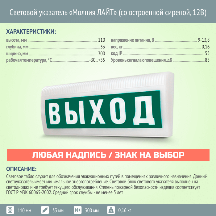 Световой указатель Молния ЛАЙТ (со встроенной сиреной, 12В) в Ачинске купить