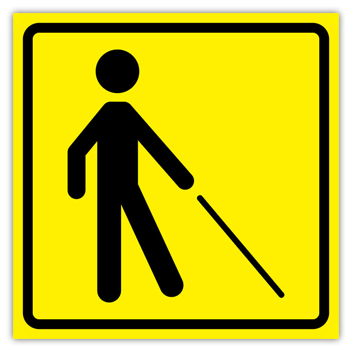 Тактильный предупреждающий знак «Уступите дорогу человеку с белой тростью», ДС77 (полистирол 3 мм, 200х200 мм) в Ачинске купить