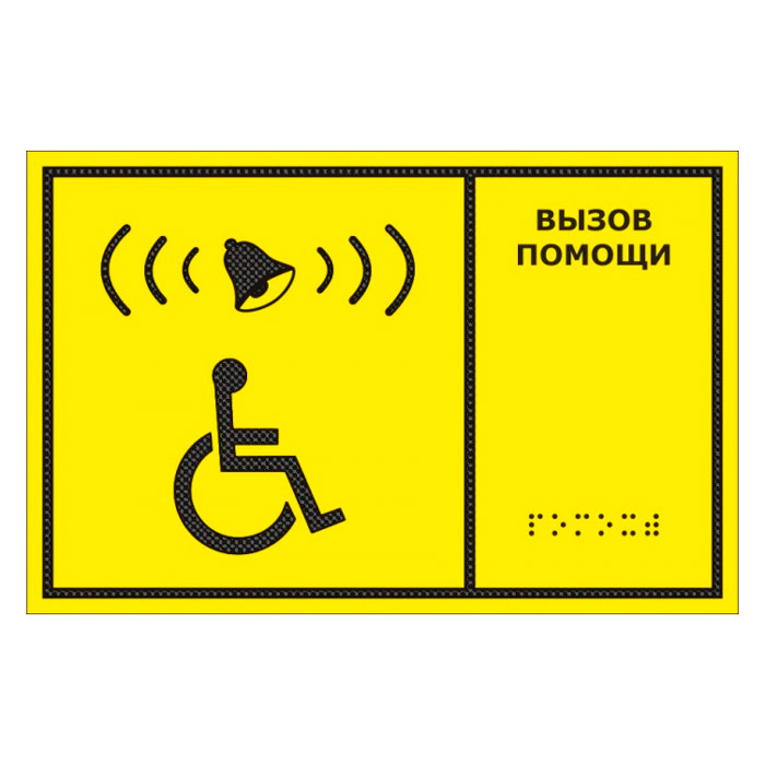 Тактильная табличка «Кнопка вызова помощи» с дублированием азбукой Брайля, ДС1 (пластик 2 мм, 300х200 мм) в Ачинске купить