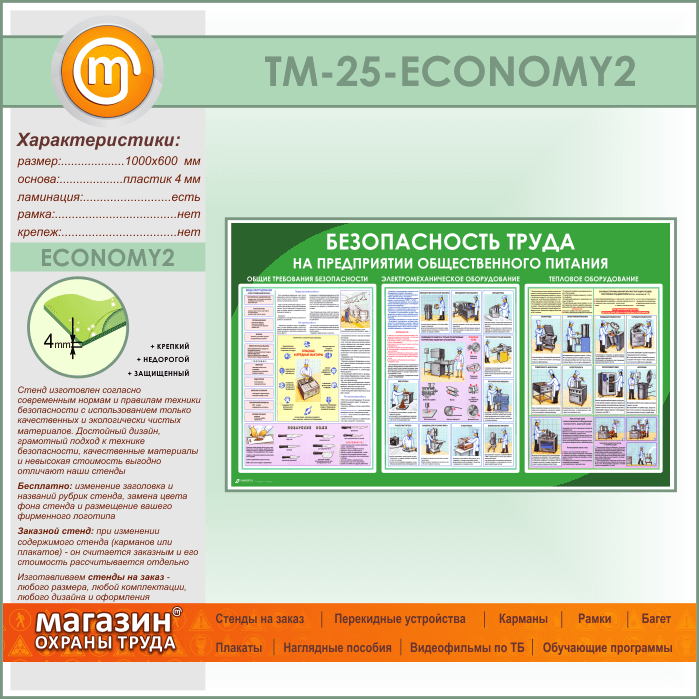 Стенд «Безопасность труда на предприятиях общественного питания» (TM-25-ECONOMY2) в Ачинске купить