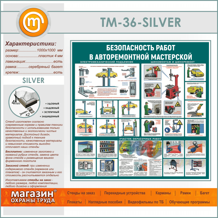 Стенд «Безопасность работ в авторемонтной мастерской» (TM-36-SILVER) в Ачинске купить