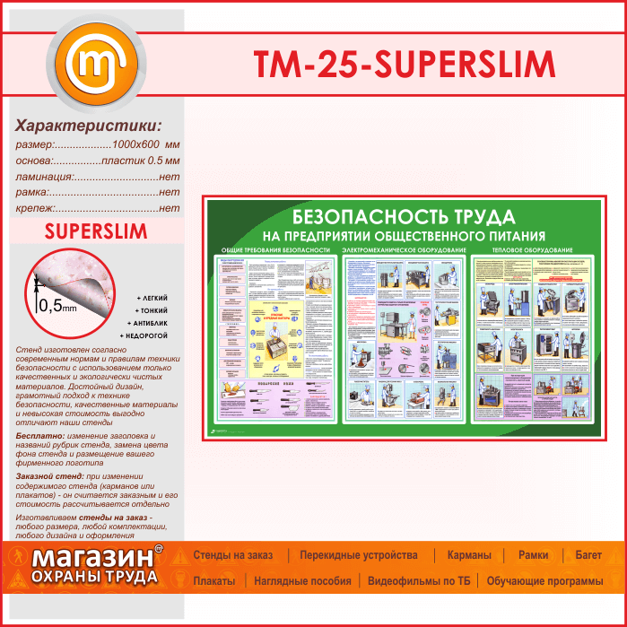 Стенд «Безопасность труда на предприятиях общественного питания» (TM-25-SUPERSLIM) в Ачинске купить