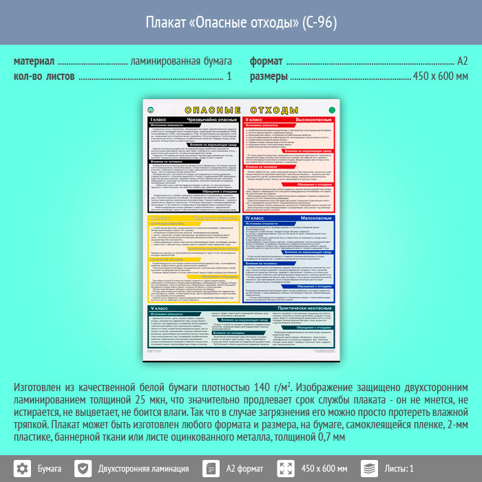 Плакат «Опасные отходы» (С-96, ламинированная бумага, А2, 1 лист) в Ачинске купить