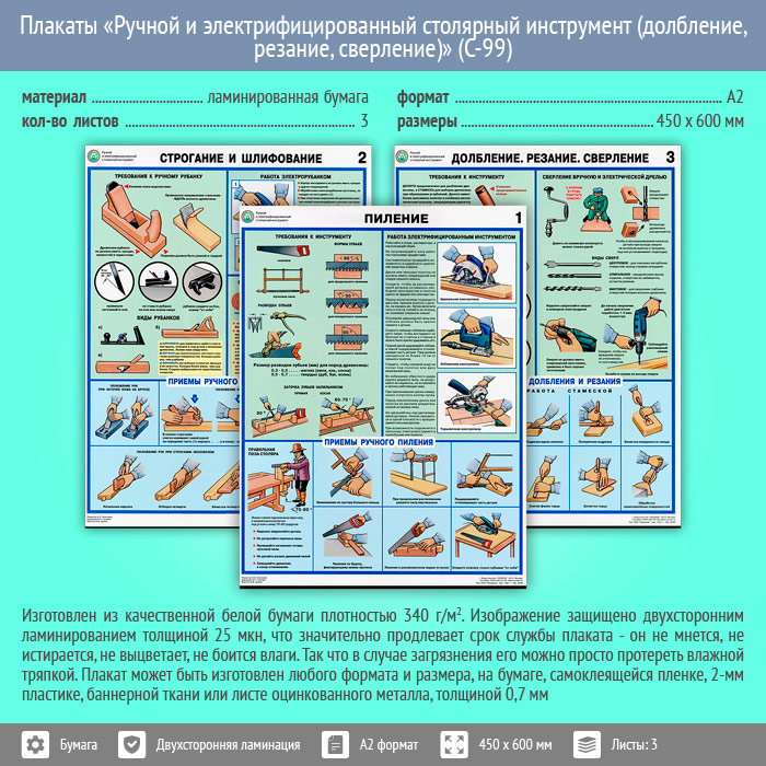 Плакаты «Ручной и электрифицированный столярный инструмент» (С-99, ламинированная бумага, А2, 3 листа) в Ачинске купить