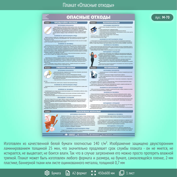 Плакат «Опасные отходы» (М-70, ламинированная бумага, А2, 1 лист) в Ачинске купить