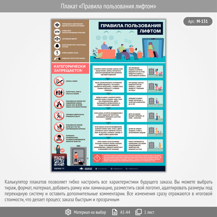 Плакат «Правила пользования лифтом» с QR (М-131, 1 лист) в Ачинске купить
