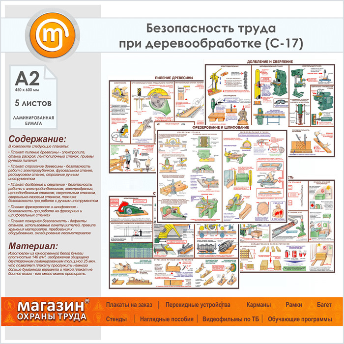 Плакаты «Безопасность труда при деревообработке» (С-17, ламинированная бумага, А2, 5 листов) в Ачинске купить