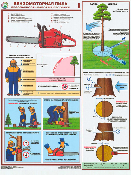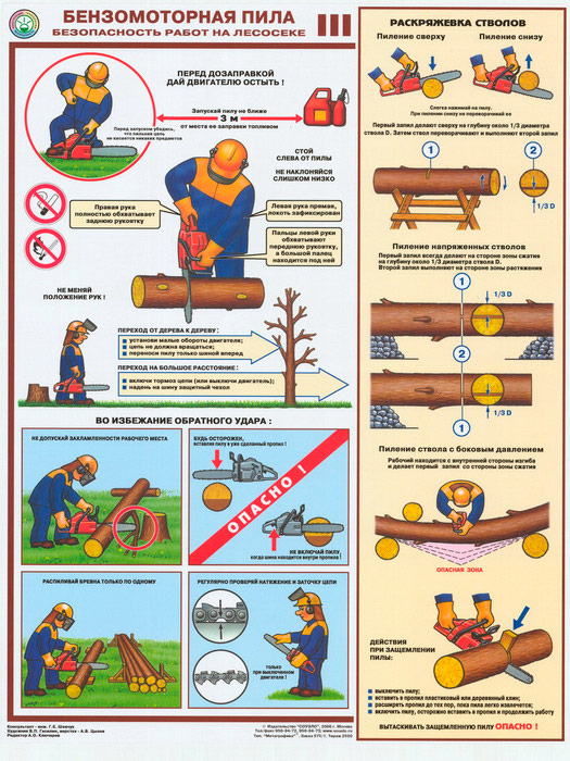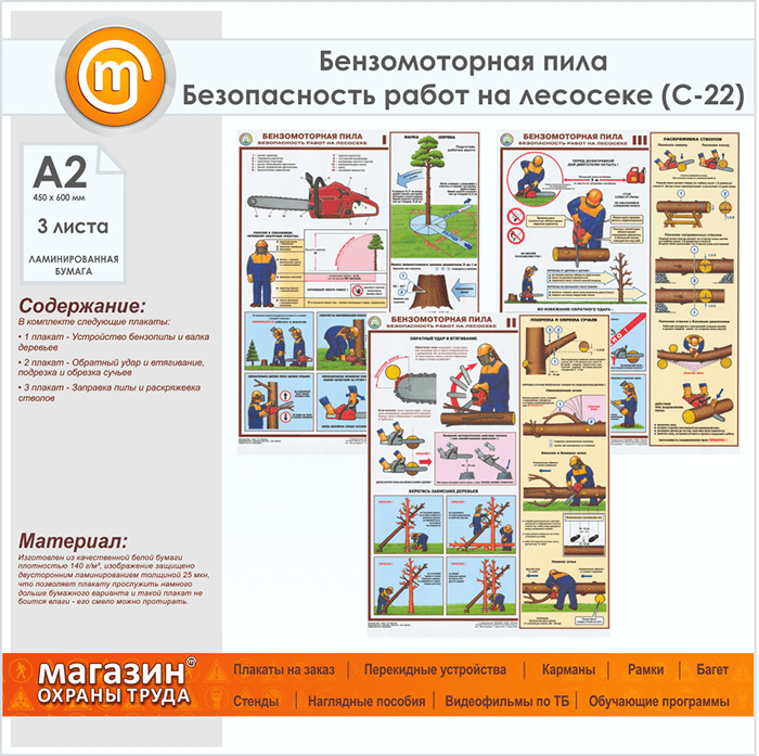 Плакаты «Бензомоторная пила. Безопасность работ на лесосеке» (С-22, ламинированная бумага, А2, 3 листа) в Ачинске купить