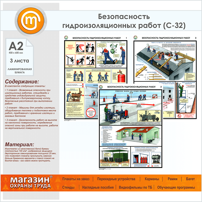 Плакаты «Безопасность гидроизоляционных работ» (С-32, ламинированная бумага, А2, 3 листа) в Ачинске купить