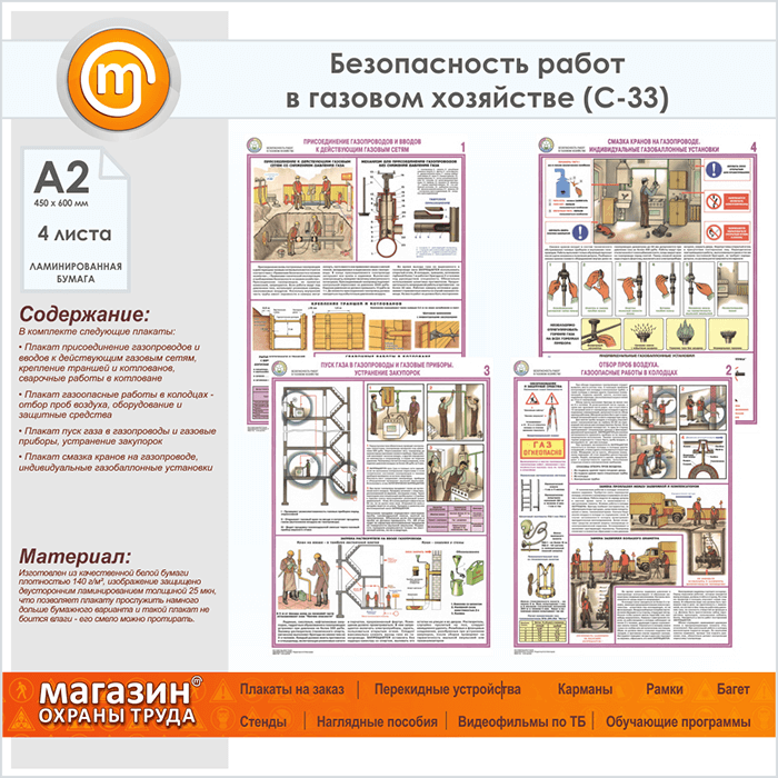 Плакаты «Безопасность работ в газовом хозяйстве» (С-33, ламинированная бумага, А2, 4 листа) в Ачинске купить