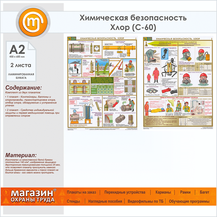 Плакаты «Химическая безопасность. Хлор» (С-60, ламинированная бумага, А2, 2 листа) в Ачинске купить