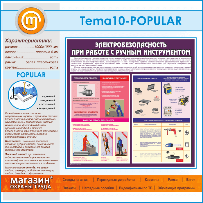 Стенд «Электробезопасность при работе с ручным инструментом» (TM-10-POPULAR) в Ачинске купить