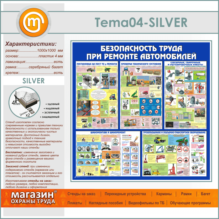 Стенд «Безопасность труда при ремонте автомобилей» (TM-04-SILVER) в Ачинске купить