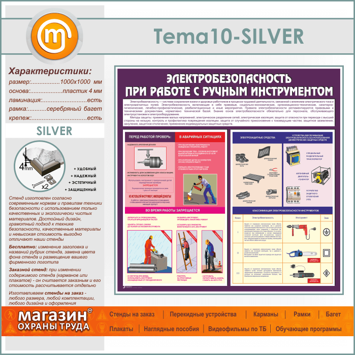 Стенд «Электробезопасность при работе с ручным инструментом» (TM-10-SILVER) в Ачинске купить