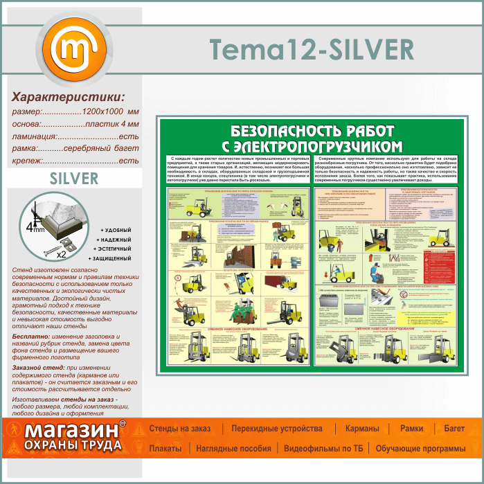 Стенд «Безопасность работ с электропогрузчиком» (TM-12-SILVER) в Ачинске купить